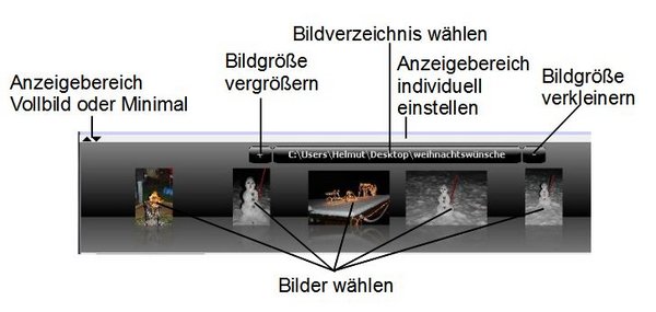 Bei der Erstellung einer Collage benötigt man meist Bilder aus einem Verzeichnis. Um diese im schnellen Zugriff zu haben, kann man im unteren Rand die Bilder eines Ordners anzeigen lassen.